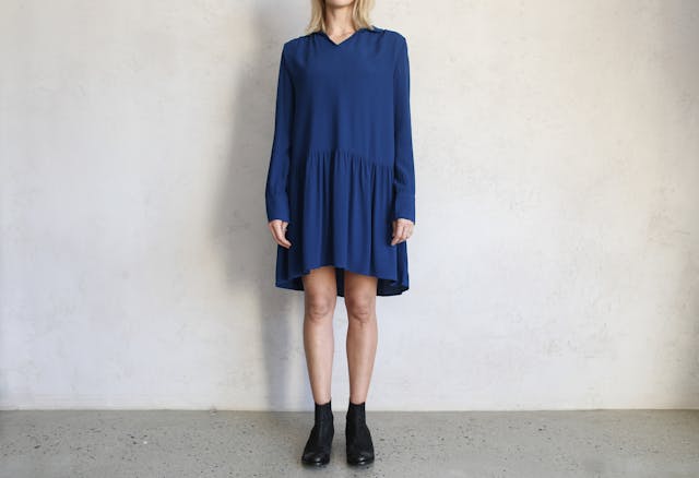 - Pro každodenní nošení s tmavomodrými šaty se hodí pohodlné balerínky, kotníkové boty nebo tenisky ve stejné barvě.